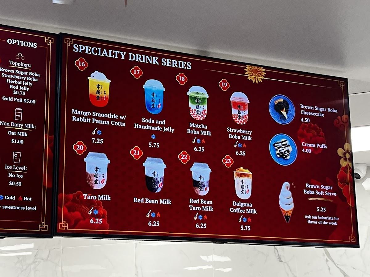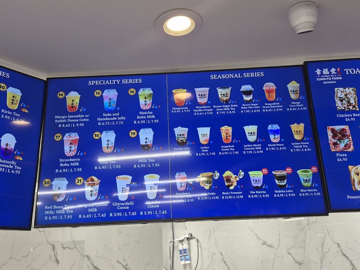 From a reviewer’s perspective, the menu at Xing Fu Tang - Duluth offers a well-rounded and thoughtfully curated experience that successfully brings together signature drinks, creative seasonal items, and satisfying desserts. The heart of the menu clearly lies in the Brown Sugar Boba Series, where classics like Signature Brown Sugar Boba Milk, Brown Sugar Boba Milk Tea, Herbal Jelly Brown Sugar Boba Milk, Brown Sugar Boba Milk w/ Dalgona, and Brown Sugar Boba Chocolate Milk showcase the brand’s commitment to rich, caramelized flavors and chewy, freshly prepared boba. For those seeking lighter and fruit-forward options, the Fruit Tea Series stands out with refreshing choices such as Jasmine Green Tea with Honeycomb, Damascus Rose Tea, Kirin Tea, Jasmine Tea, and the visually striking Butterfly Lemonade Tea. The Summer Freeze lineup, including Oolong Lychee Freeze, Butterfly Passionfruit Freeze, Rose Mango Freeze with Mango Jelly, Rose Pineapple Freeze, and Kirin Passion Freeze, delivers icy, tropical relief perfect for warm Georgia days. Meanwhile, the Specialty Drink Series adds depth with crowd-pleasers like Matcha Boba Milk, Strawberry Boba Milk, Red Bean Taro Milk / Milk Tea, Ghirardelli Cocoa, and Mango Smoothie with Rabbit Panna Cotta, balancing indulgence and creativity. Beyond drinks, the menu extends into snacks and desserts with comforting Bites such as Dubai Chocolate Toast, Corn Pizza Toast, Black Sesame Toast, Garlic Cheese Toast, and Cinnamon Toast, as well as rich desserts like Brown Sugar Boba Cheesecake, Brown Sugar Boba Gold Cheesecake, Strawberry Boba Cheesecake, and Cream Puff. Seasonal creativity shines through collections like the Seasonal Series, Anime Cosplay Series, and Santa Workshop Series, featuring fun, limited-time drinks and themed items such as Pinanada, Lucky Rabbit, Kuro Kuma, Uji Aoi-Chan, Berry Noel, and Snowy Brew. Even branded merchandise like the Christmas Pin, Xing Fu Tang Tote Bag (White), and Snowman Bottle adds to the overall experience. As a conclusion, Xing Fu Tang’s Duluth menu feels comprehensive yet focused, making it easy for both first-time visitors and loyal fans to find something memorable, whether they come for a classic brown sugar boba or a playful seasonal creation.